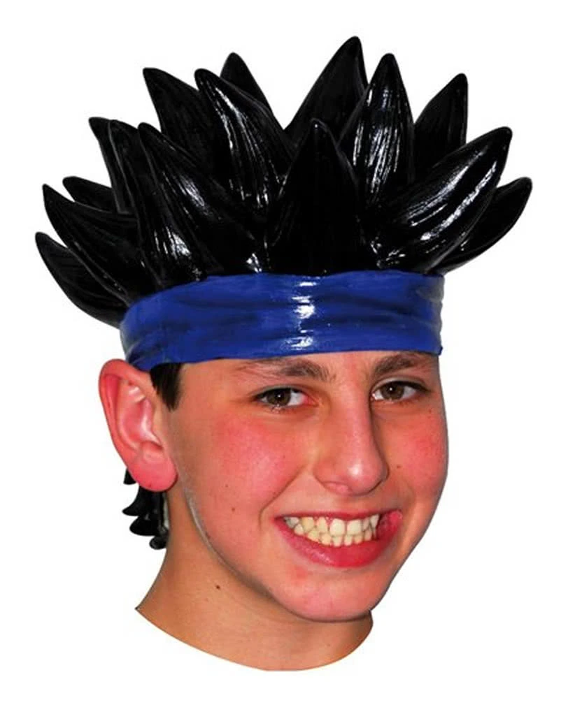 Die schwarzen Manga Perücke mit Stachelfrisur ais Latex vervollständigt dein liebevoll zusammengestelltes Manga-Kostüm. Die freche Perücke mit dem blauen Haarband lässt dich sportlich und kämpferisch wirken. Auf Kostümfesten und Comic-Partys bist du damit ein echter Hingucker.
