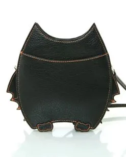Das großen Augen des niedlichen Abkömmlings von Graf Dracula schauen jeden genau an. Hände weg von diesen Sachen, wollen sie sagen. Und die langen Zähne, die auf der süßen Fledermaus Umhängetasche zu sehen, wirken ebenso überzeugend, wie die gut erkennbaren Flügel. Die schwarze Handtasche in Fledermaus Form ist ideal als Gothic Fashion oder als Mode Accessoire für Halloween. Sie wurde aus robustem Vinyl hergestellt und besitzt einen praktischen Reißverschluss.