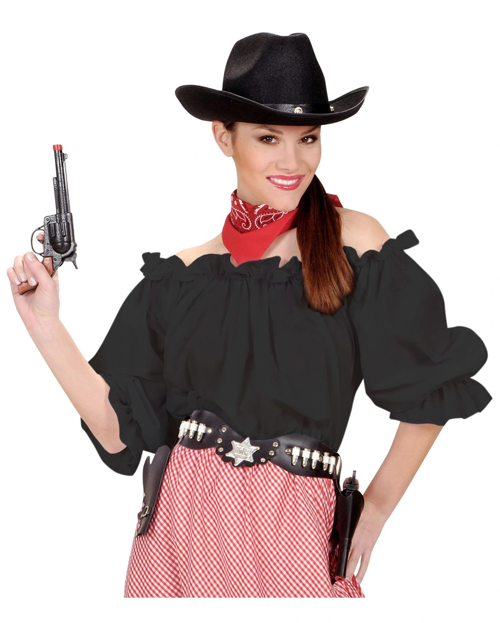 Als vielseitig einsetzbares Zubehör ist die Piratenbluse Schwarz einfach nur genial. Das Damenhemd mit dem gewissen Extra gehört deshalb zu Deinen liebsten Kleidungsstücken, wenn Du Dich für Fasching zurecht machst. Die ordentlich gepufften Ärmel der tiefschwarzen Kostüm Bluse sorgen dafür, dass Du auch als Lady aus dem Mittelalter durchgehen kannst. Mit dem schicken Carmen-Ausschnitt, den Du dank des eingenähten Gummibandes auch über die Schultern ziehen kannst, wirst Du zum sexy Blickfang auf jeder Motto Party. Ob als Piratin oder Senorita, die schwarze Kostümbluse muss mit. Die passenden Kostüme und Accessoires wie etwa der Cowboy Holster mit Gürtel findest Du beim Stöbern im Shop.